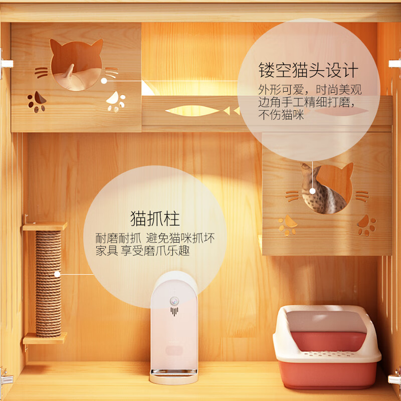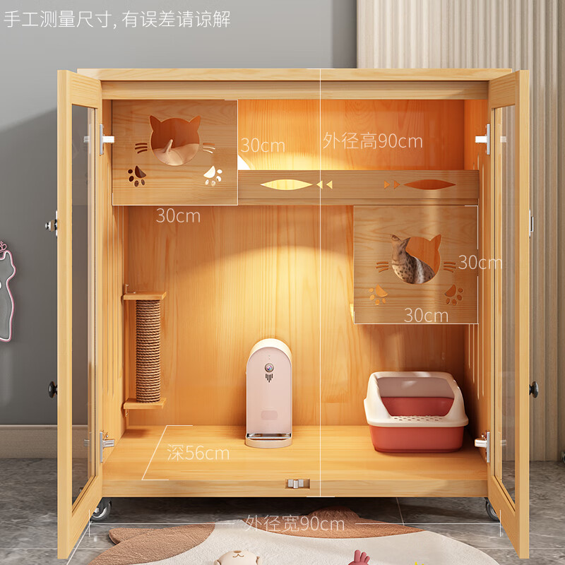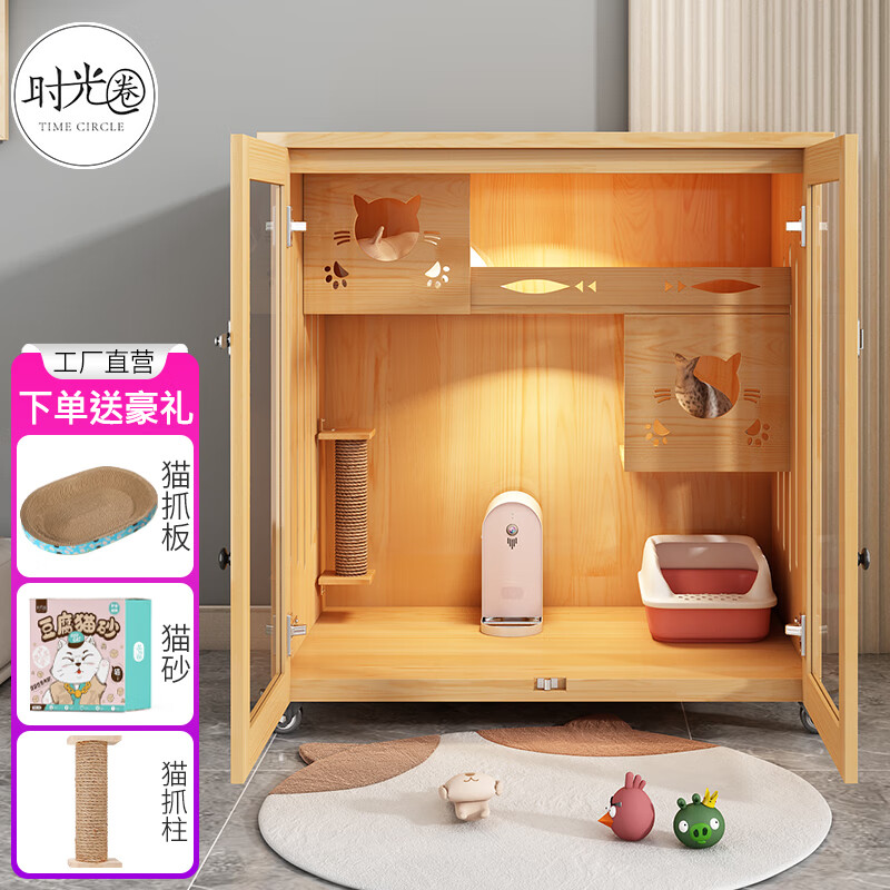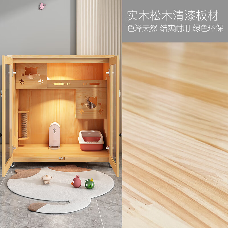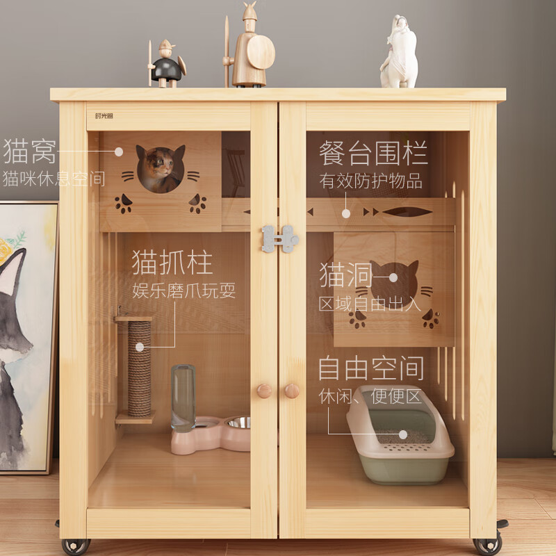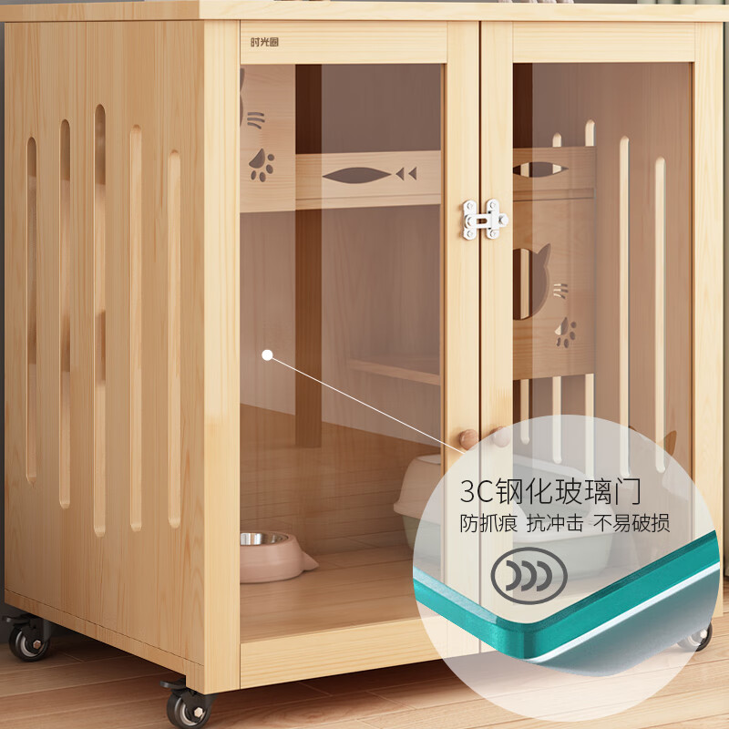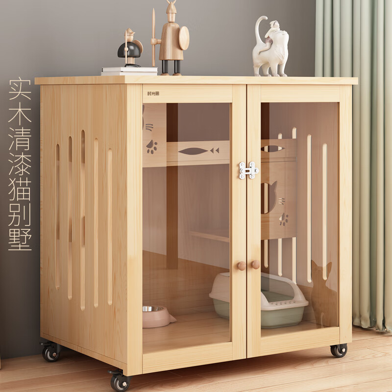 时光圈猫笼猫窝实木清漆猫别墅猫柜猫笼子猫咪宠物屋 高90宽90深60cm