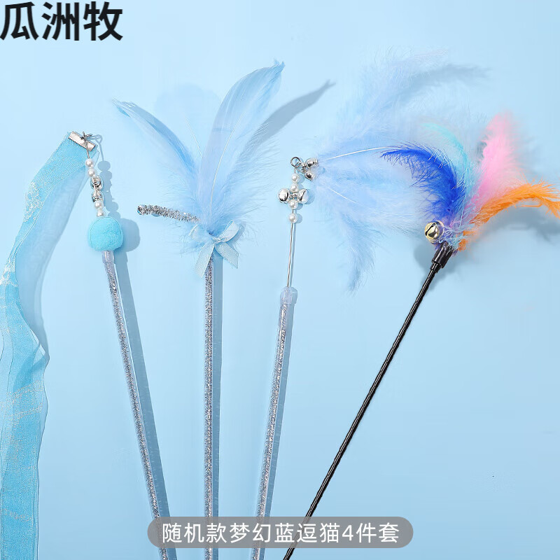 逗猫棒小猫玩具逗猫咪用品大全自嗨耐咬长杆逗猫棒神器羽毛猫抓板 嗨玩套装梦幻蓝逗猫4件套