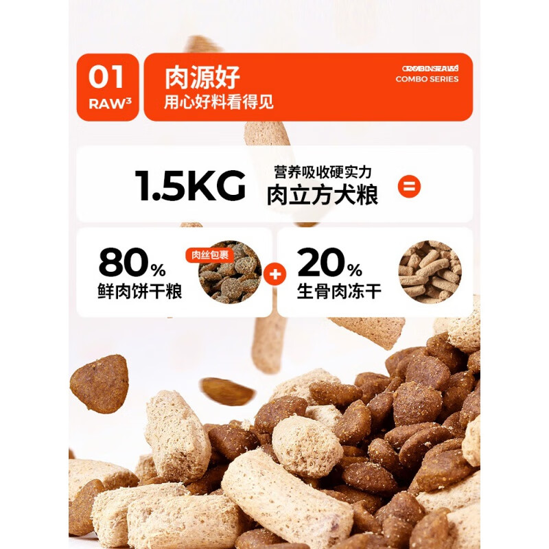 肉垫通用型狗粮成犬肉立方冻干双拼泰迪博美金毛柯基粮1.5kg 肉立方双拼科学配比1.5kg(全年龄