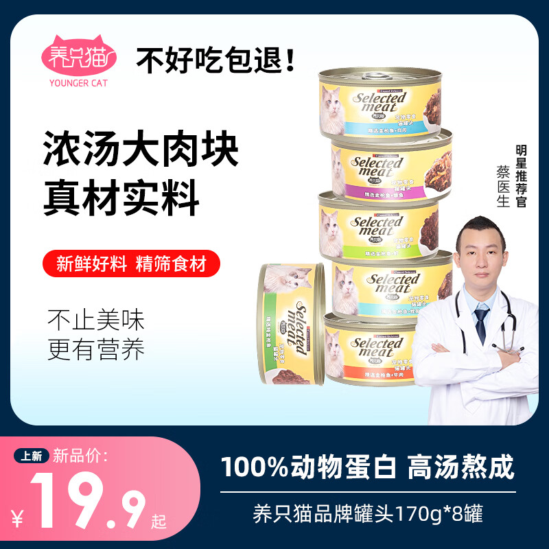 猫罐头主食罐170g*8罐幼猫成猫咪专用零食增肥营养湿粮整箱 (养只猫品牌)纯金枪鱼/8罐 170g