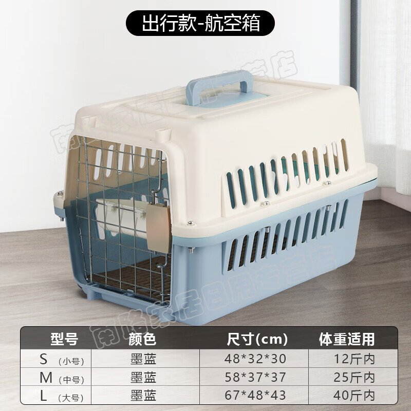 波奇多 猫咪航空箱宠物托运箱猫笼狗笼子小中型犬外出便携猫包装狗箱 [出行款]墨蓝贈隔尿板 挂碗 L-大号航空箱[40斤以内犬猫]
