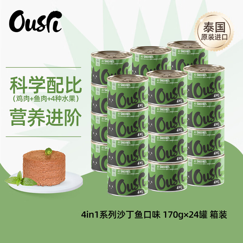 ousri心属泰国进口猫罐头4in1系列沙丁鱼味170g*24罐整箱装