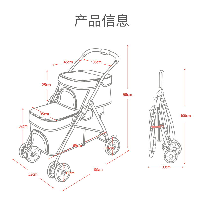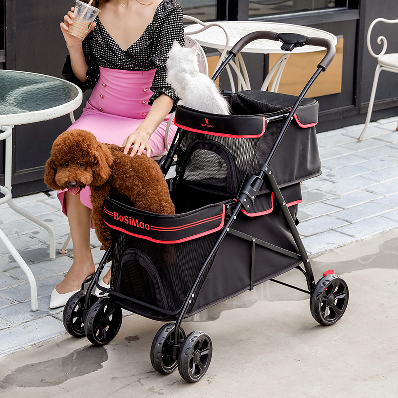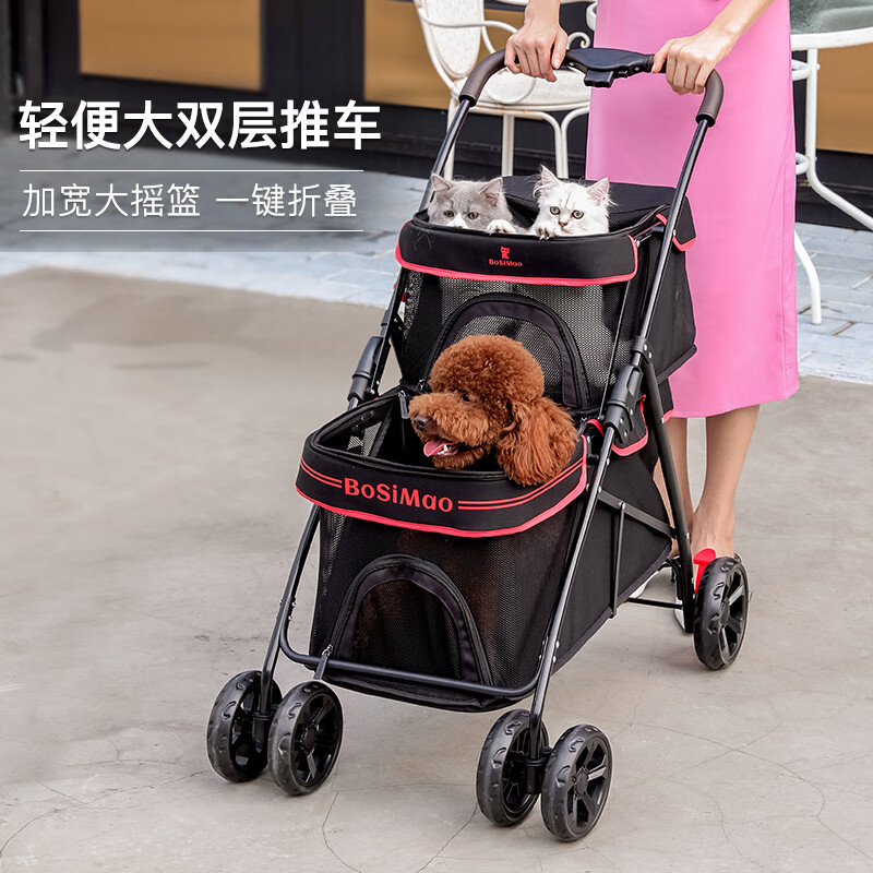DO DO PET宠物推车猫咪狗狗外出双层手推车 轻便可折叠宠物车 便携外出狗车 黑色-承重上层20斤内-下层40斤内
