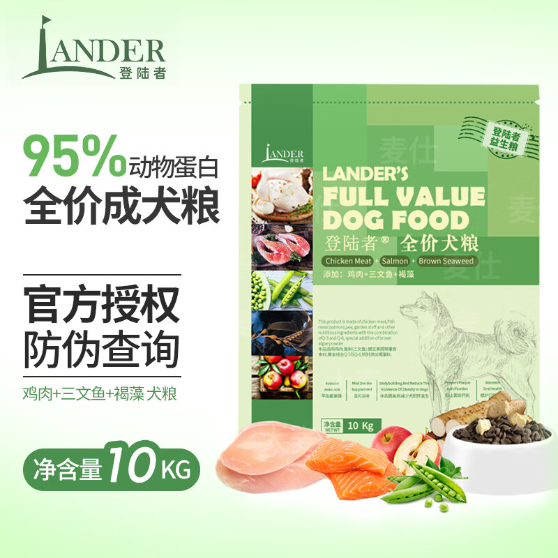 登陆者LANDER登陆者狗粮蓝波万全价全期犬粮鸭肉梨狗粮成犬小型犬鸡肉鱼 实惠囤货鸡肉 鱼 褐藻10kg