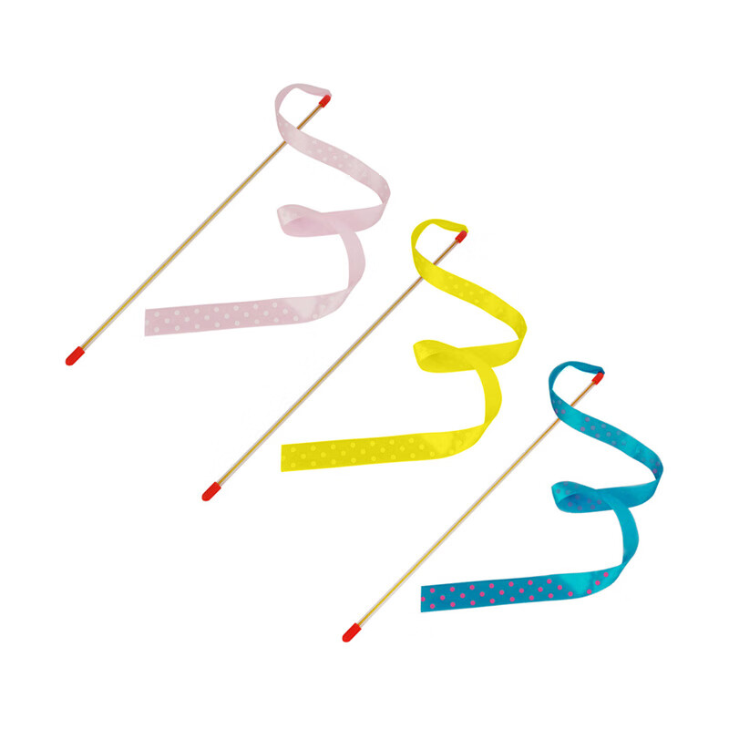 田田猫可爱波点丝带逗猫棒逗猫杆宠物猫用品猫玩具3支装