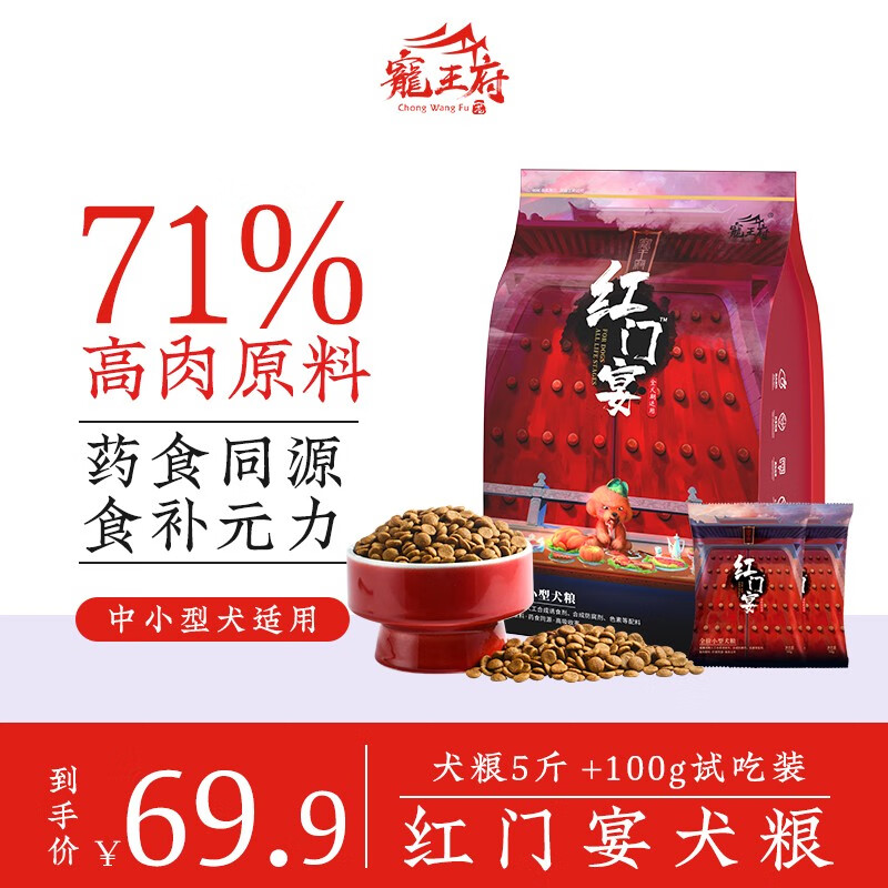 宠王府红门宴 小型犬狗粮通用型 泰迪比熊柯基小狗成犬幼犬专用天然宠物粮 40%真鸡肉 5斤 100g试吃 小型犬全犬期通用