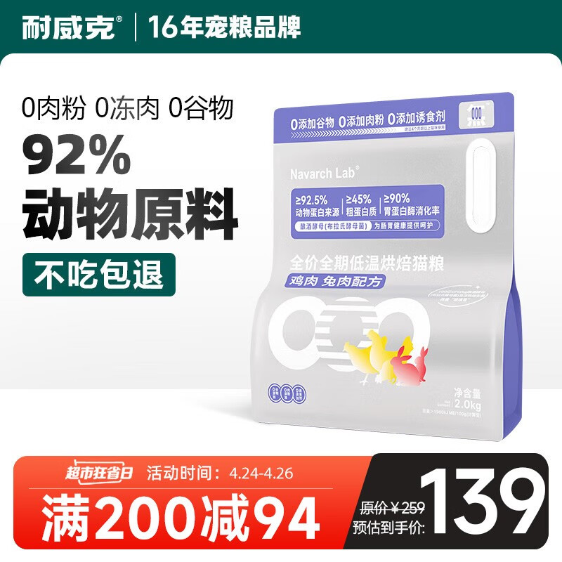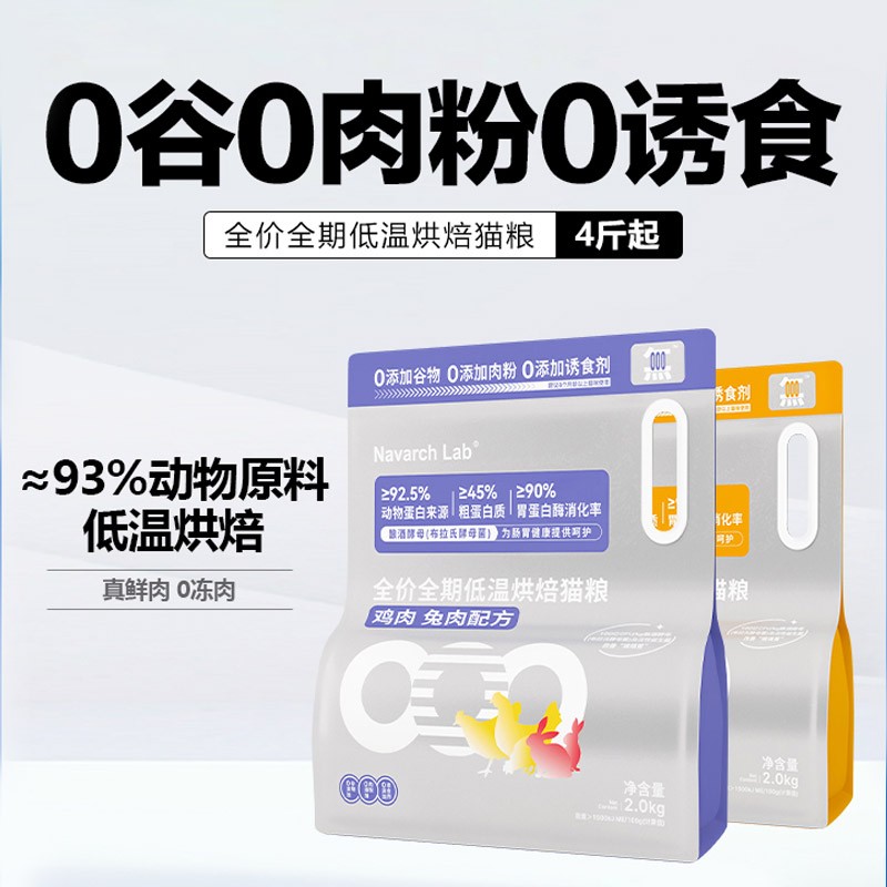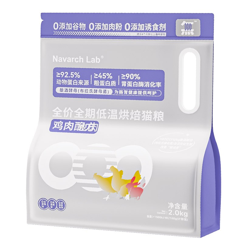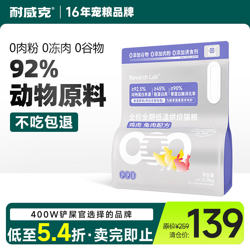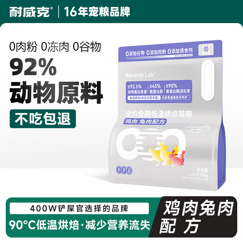 耐威克 全价全期低温烘焙猫粮 高肉含量添加益生菌 鸡肉兔肉配方2kg