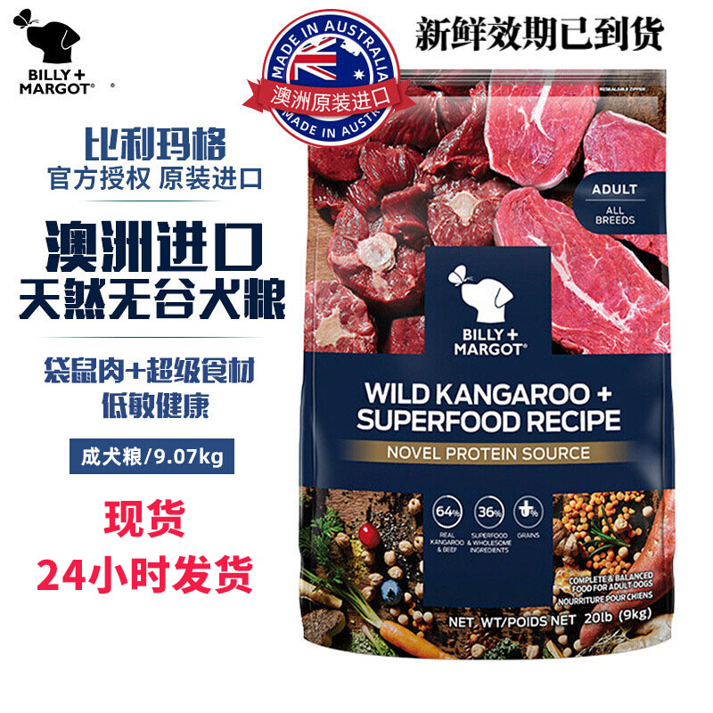 上海可发 比利玛格 Billy Margot宠物狗粮澳洲进口全价犬粮无谷低敏通用金毛泰迪狗狗主粮 袋鼠肉9.07kg单包