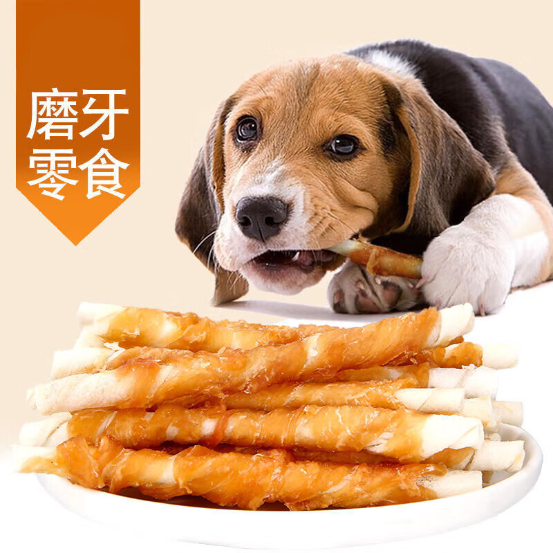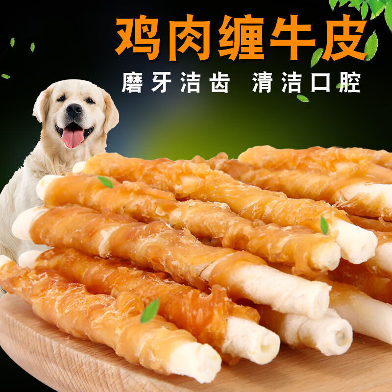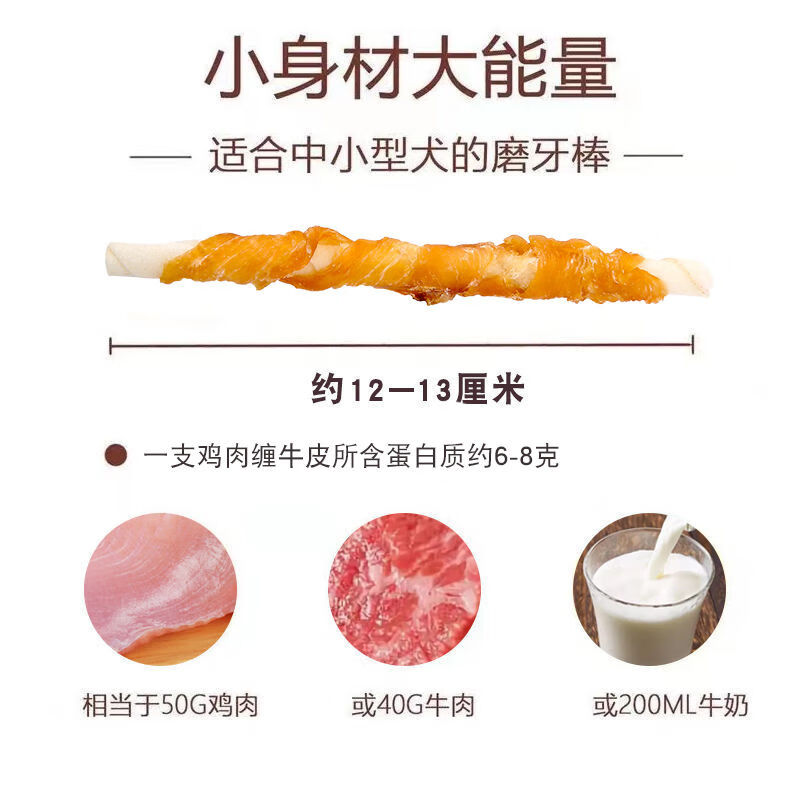 因悦狗狗磨牙棒宠物零食鸡胸肉干牛皮卷骨头耐咬泰迪博美洁齿骨 [鸡肉牛皮卷8支装]长约13cm