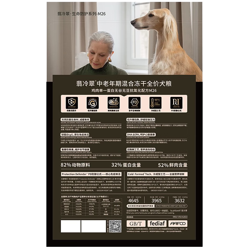 翡冷翠M系列狗粮冻干鸡胸肉低敏无谷配方全期犬粮全阶段适用 M26鸡肉中老年犬粮5.45kg