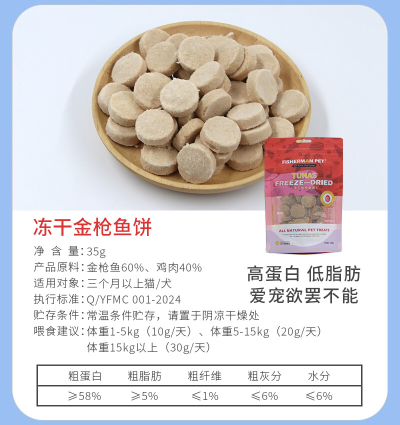 FISHERMANPET(渔夫牧场) 冻干金枪鱼饼宠物零食35g