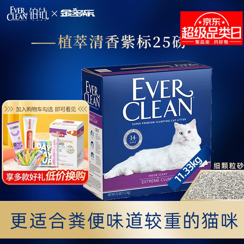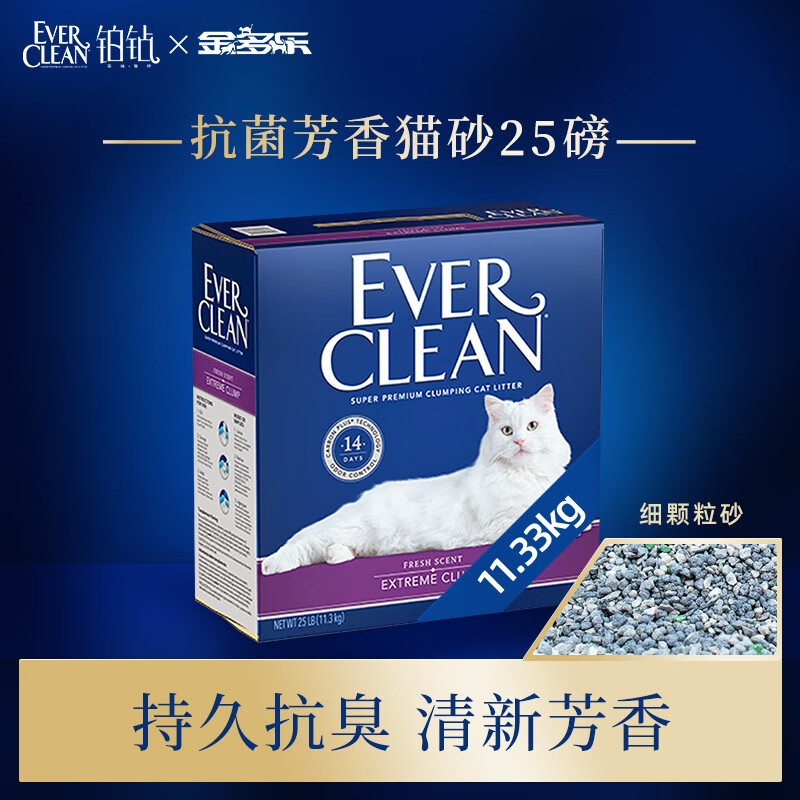 铂钻(EverClean)【美国原装进口】蓝标进口猫砂猫咪清洁用品活性炭膨润土成猫幼猫 【紫标】速凝清新芳香猫砂25磅