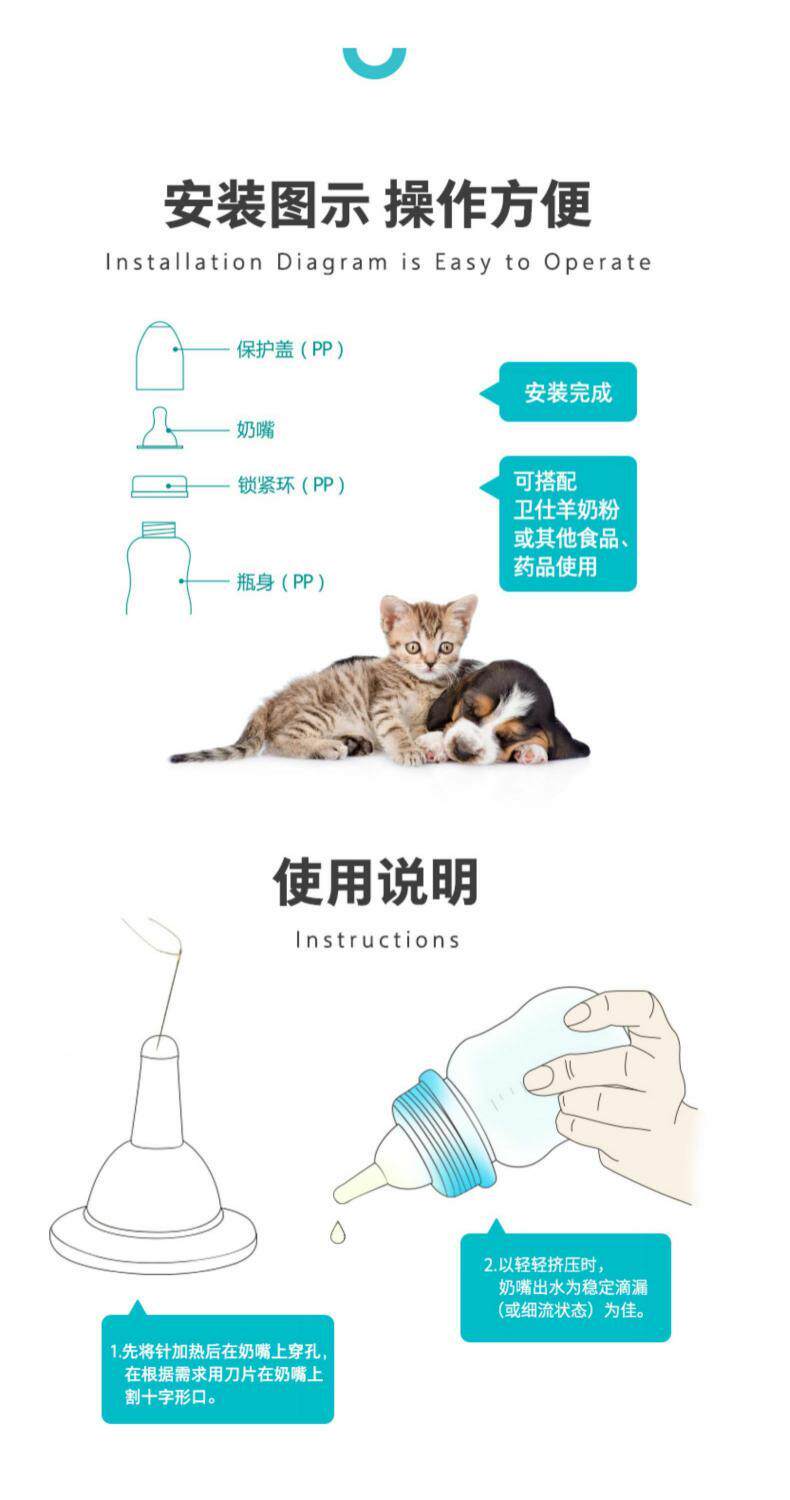卫仕宠物奶瓶90ML 新生小奶狗幼犬幼猫咪专用奶瓶奶嘴狗狗喂奶器
