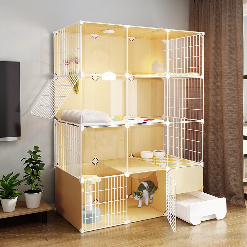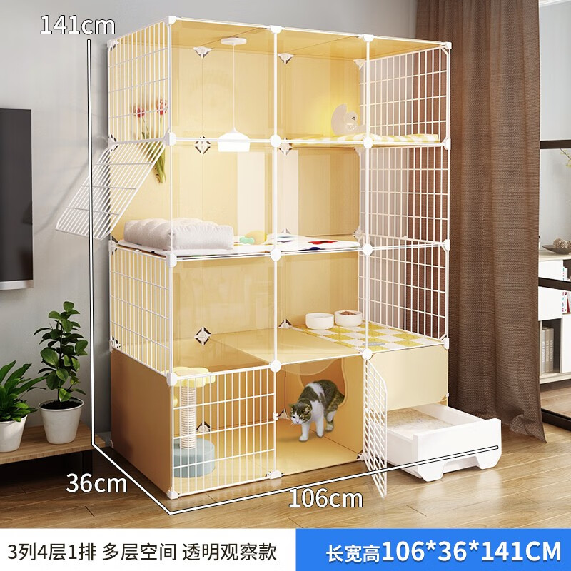 蔻丝猫笼子带厕所一体封闭式猫砂盆猫笼子家用猫别墅超大号猫窝舍猫柜 高透款【3列4层1排】多层空间 至尊款:自动续水猫碗 豪华款