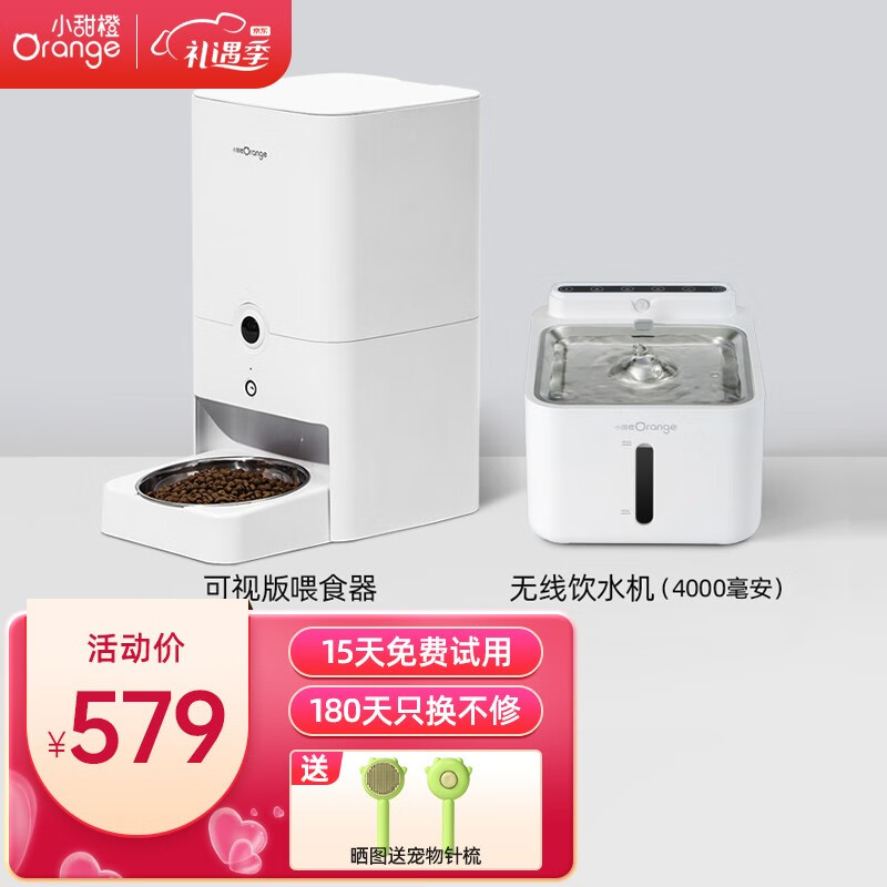 小甜橙猫咪饮水机不插电流动喝水宠物自动饮水器活水智能充电恒温加热 4000饮水机 可视喂食器,更省60