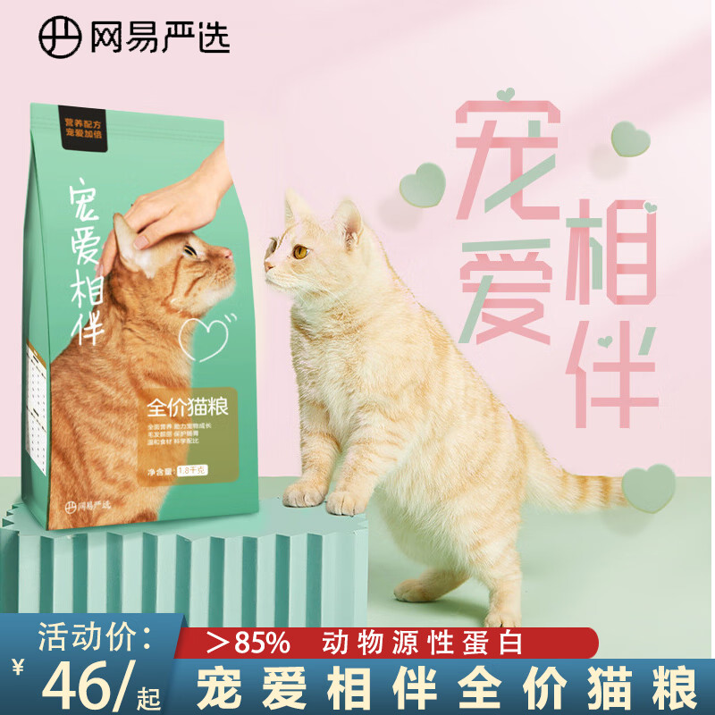 网易严选【官方授权宠爱相伴全阶段全价猫粮猫猫通用型宠物全价猫粮主粮 宠爱相伴1.8KG 3包装加罐头80克3个
