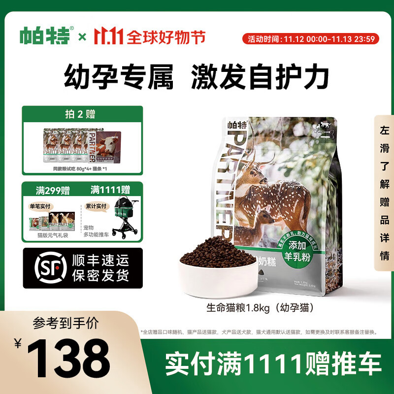 帕特【生命系列】成幼猫牛肉高蛋白无谷冻干生骨肉美毛全期猫粮1.8kg 【幼猫