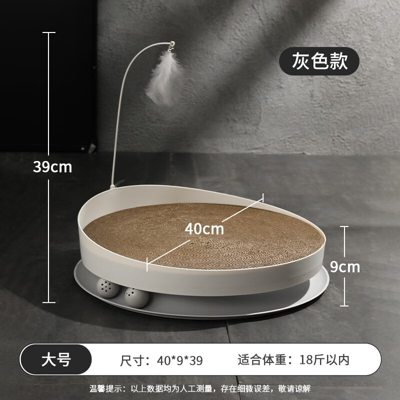 KimPets猫抓板猫窝逗猫一体 圆形耐磨瓦楞纸 不掉屑猫玩具 猫咪用品 猫抓窝 磨爪板 灰色大号