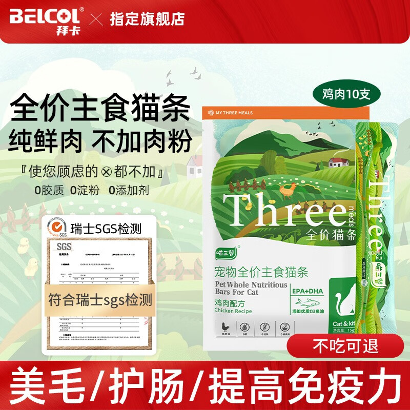 喵三餐主食猫条猫零食鱼油猫条防掉毛幼猫咪猫鱼肉成猫孕猫罐头 鸡肉主食猫条10支/包