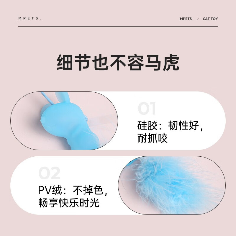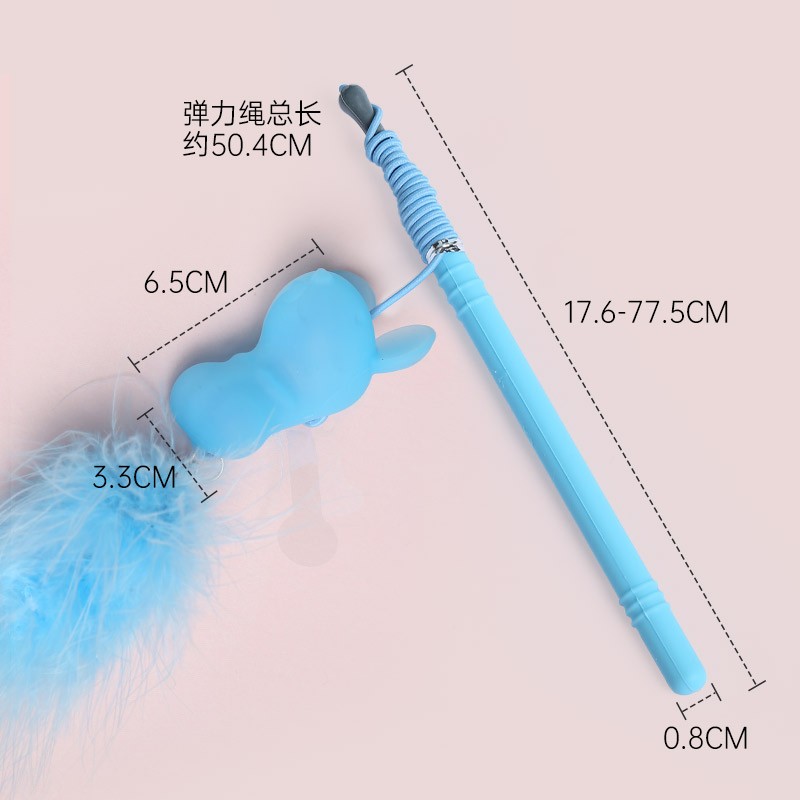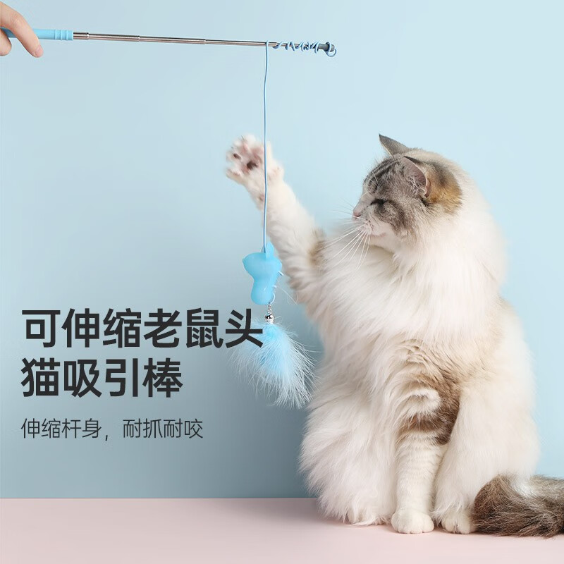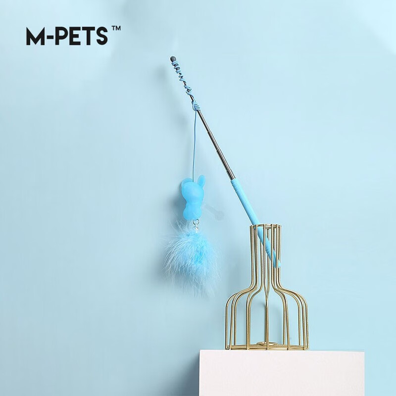 M-PETS 加长伸缩杆羽毛逗猫棒猫玩具幼猫成猫自嗨耐咬硅胶老鼠猫咪吸引棒宠物用品(蓝色单只装)