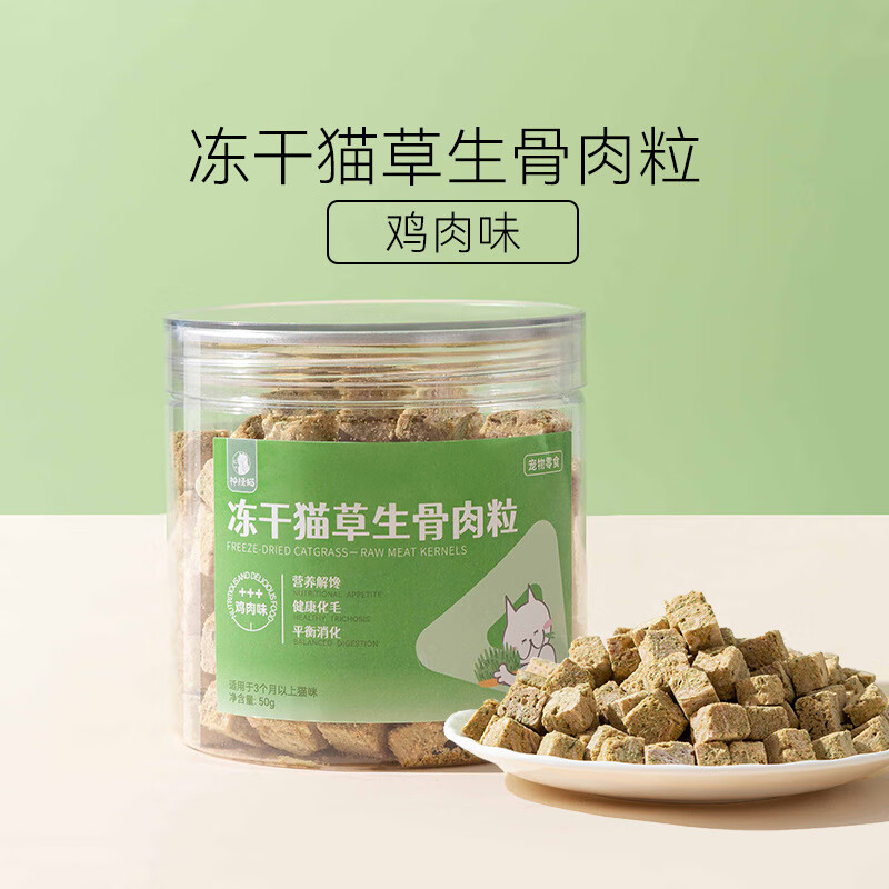 神经猫(shenjingmao)猫咪冻干生骨肉猫草冻干鸡肉零食幼成猫肉饼宠物猫食品 猫草粒-鸡肉味
