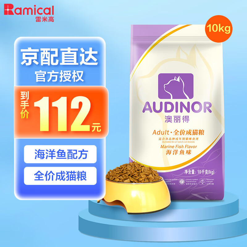 雷米高(RAMICAL)猫粮10kg20斤成猫幼猫粮海洋鱼味 全价成猫10KG