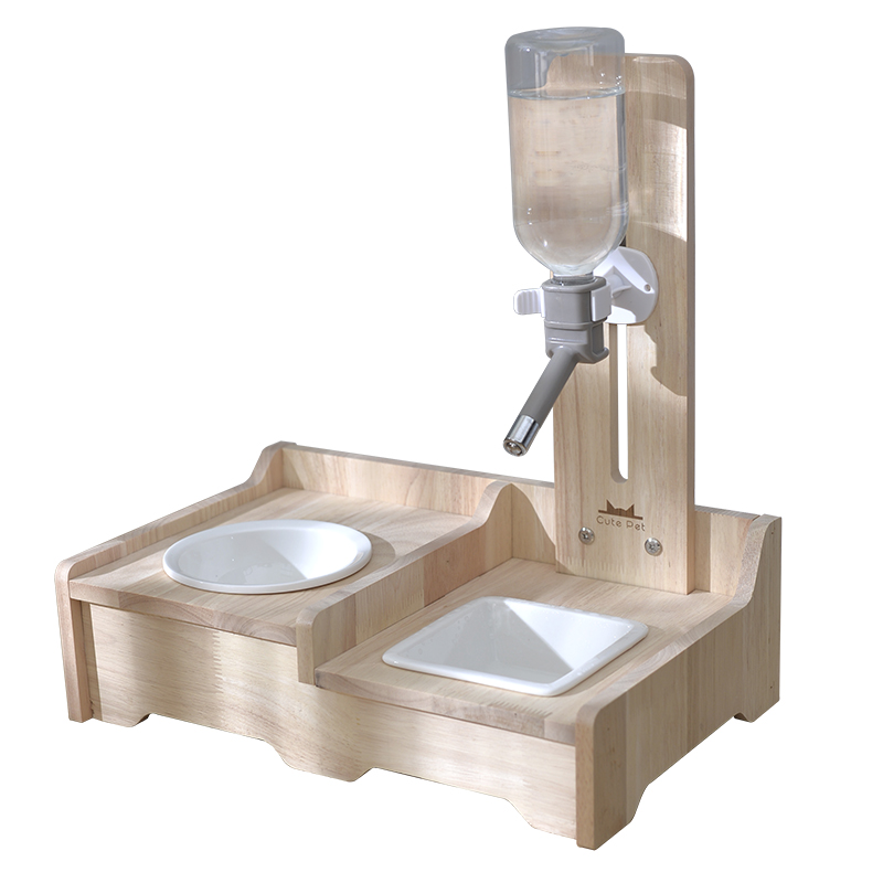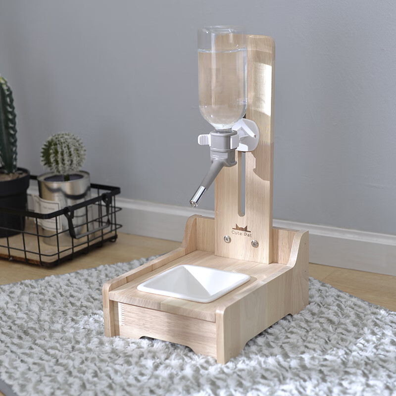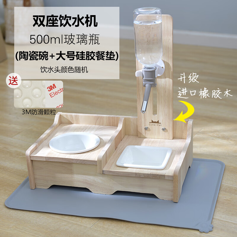笼趣狗狗饮水器喝水机不湿嘴神器宠物猫咪挂式喂水小狗立式实木水壶架 实木双座-玻璃瓶 灰色 大号餐垫
