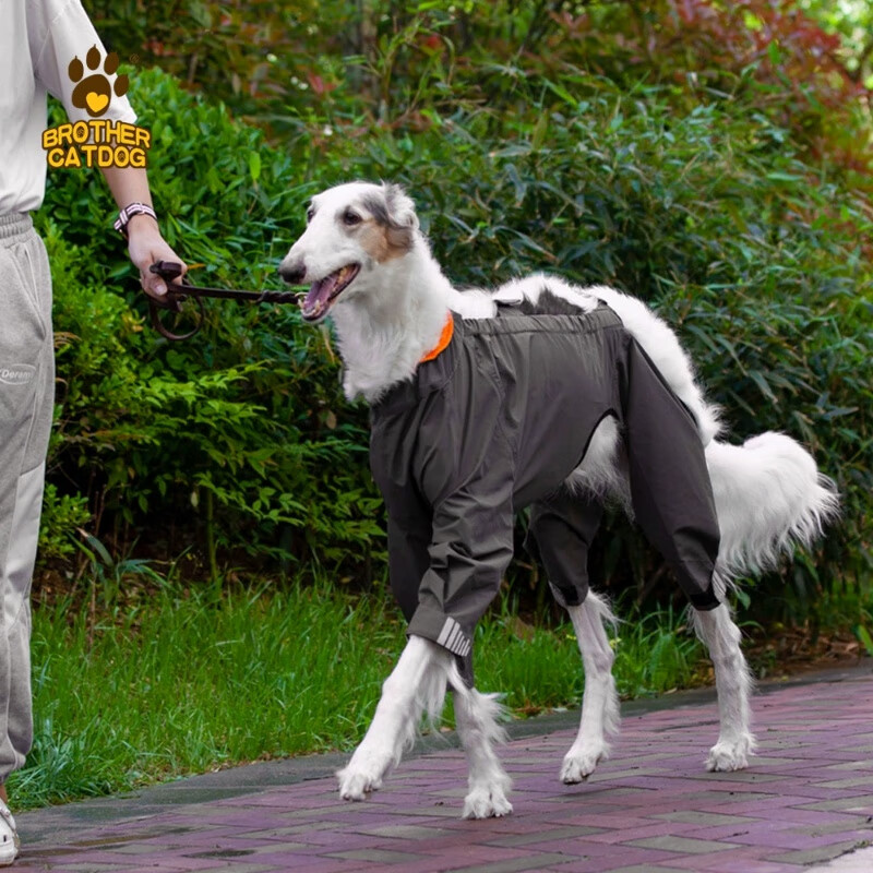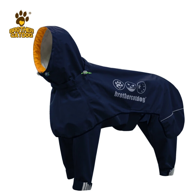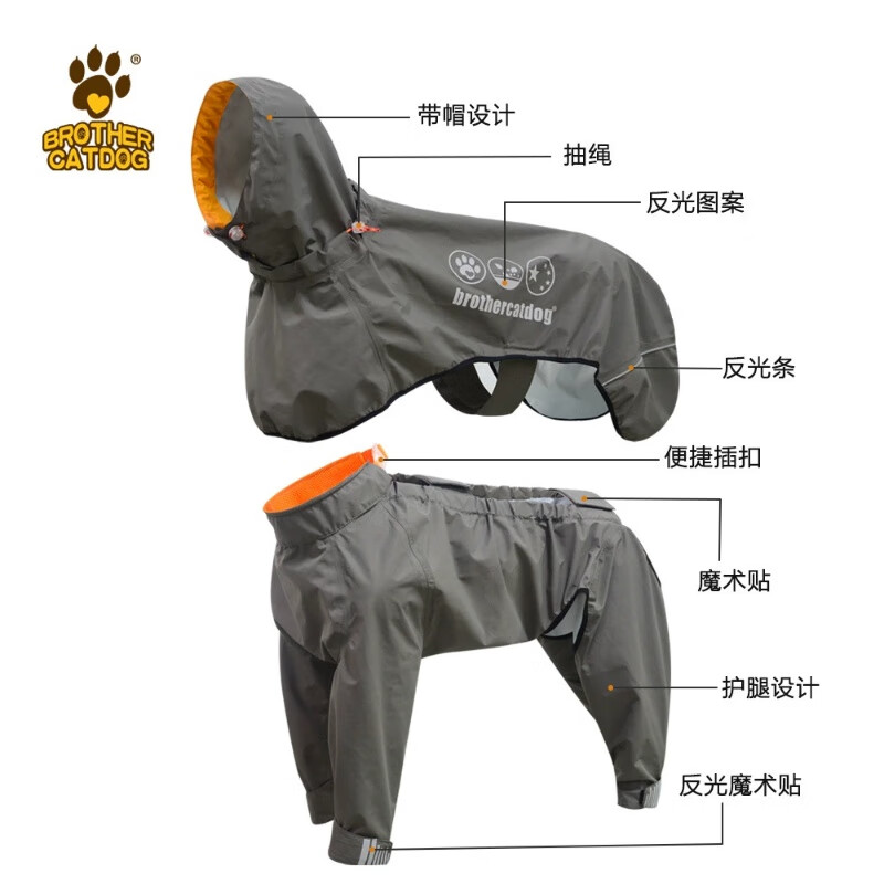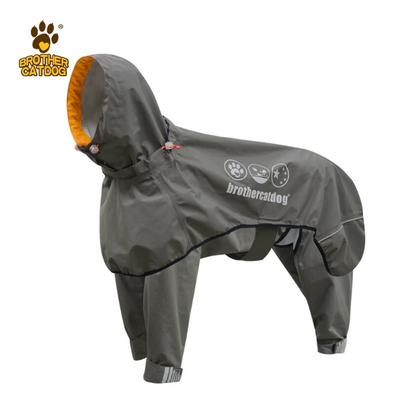 猫兄狗弟(brother cat dog)新款宠物狗狗雨衣 可调节狗雨衣全包中大型犬压胶四脚连帽雨披 深卡其 XL(建议65-75斤)