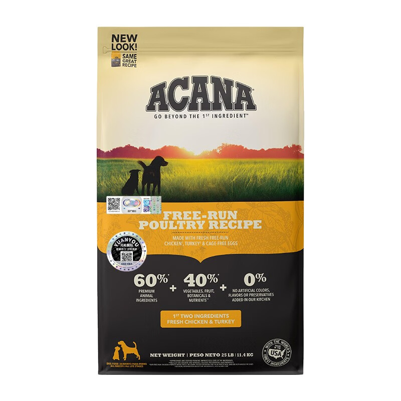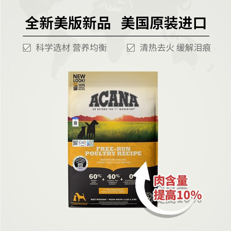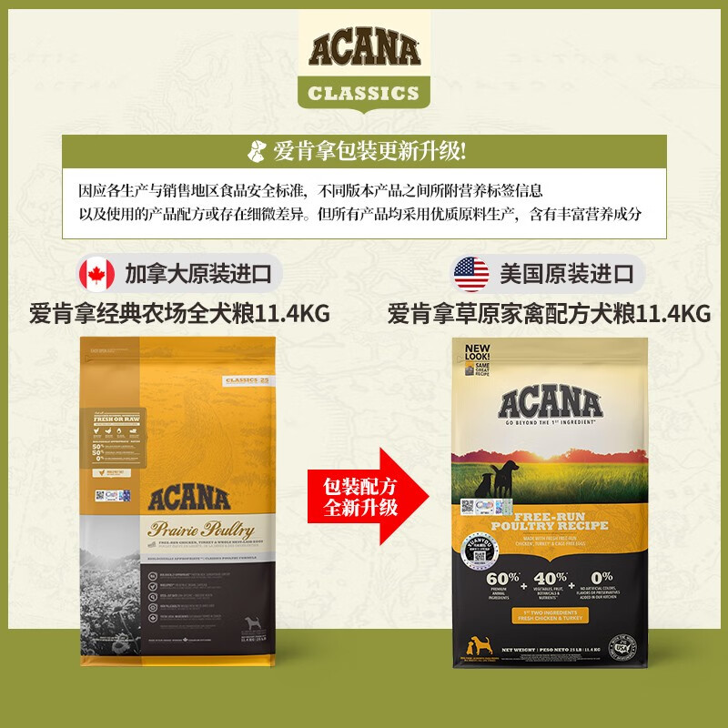 爱肯拿(ACANA)[效期至23/9/15]狗粮草原家禽幼成犬通用进口无谷低敏犬粮11.4KG 草原家禽狗粮11.4kg