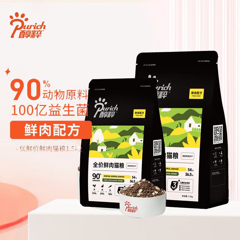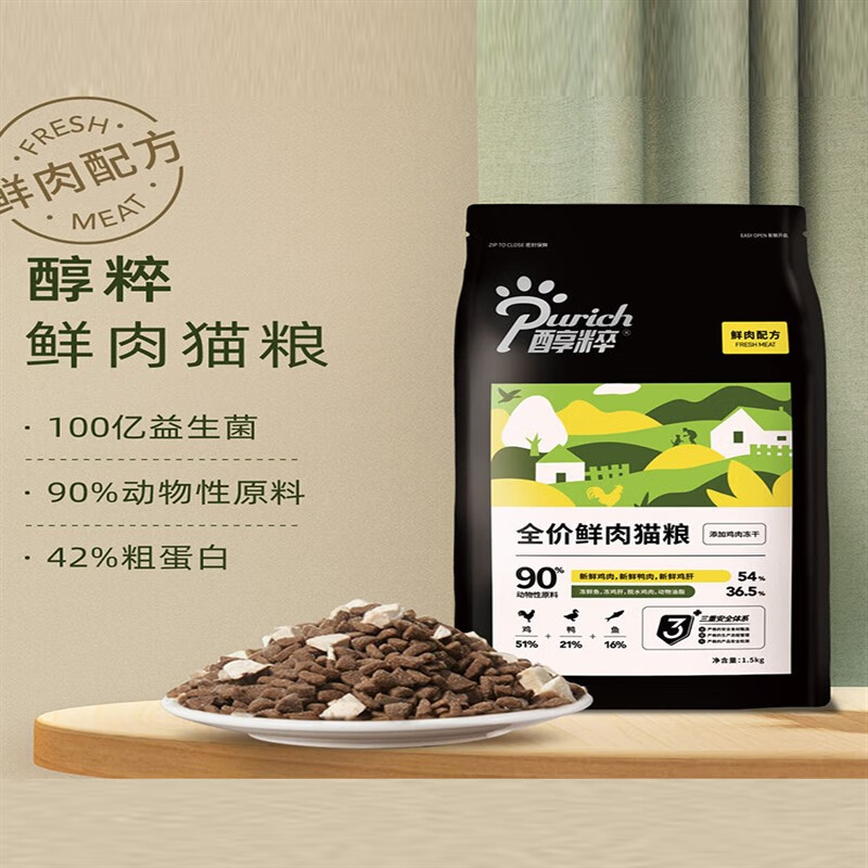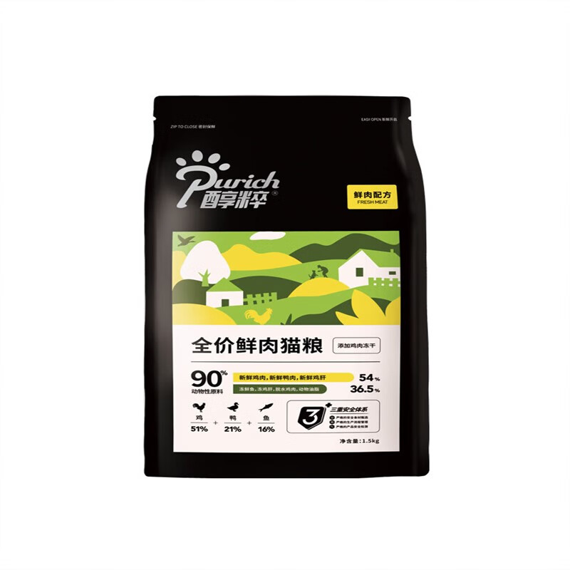 醇粹(Purich)全价黑标鲜肉冻干成猫幼猫增肥发腮营养纯粹国产猫粮1.5公斤 鲜肉配方-添加冻干 0g 0包 1.5kg