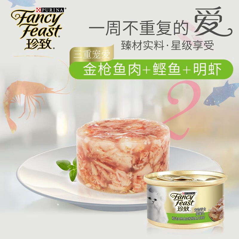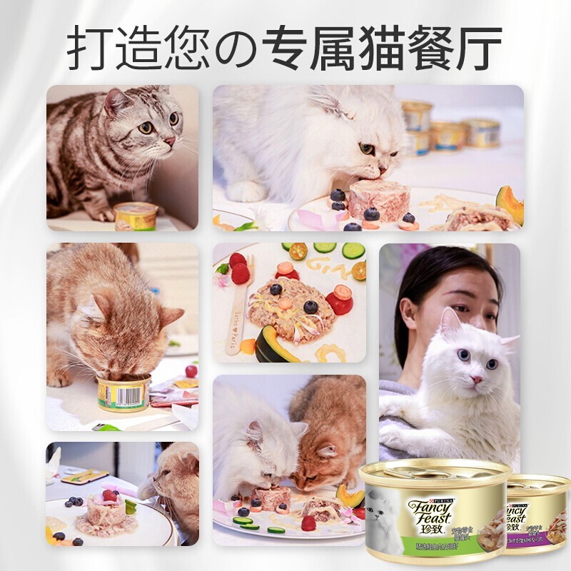 珍致(FancyFeast)猫罐头 进口成猫猫湿粮罐头猫零食 48罐 金枪鱼人工蟹肉条85g*48罐