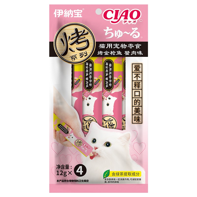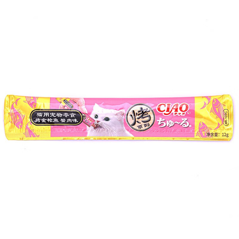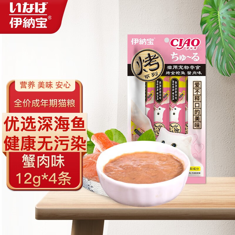 伊纳宝猫用宠物零食 烤系列猫条猫果冻 海洋鱼流质肉泥湿粮猫零食 蟹肉味12g*4条