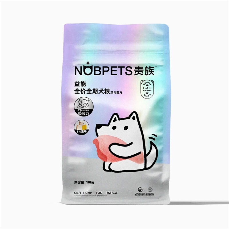 贵族臻享全价全期狗粮鸡肉牛肉配方2kg添加冻干生骨肉犬粮幼犬成犬通用 鸡肉狗粮10kg-益能系列