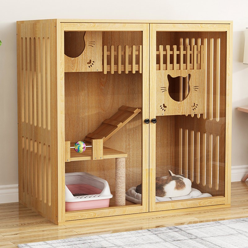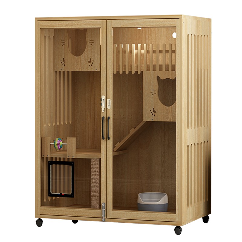 卫嘉乐猫笼子 实木生态猫别墅 猫笼木质 猫舍猫窝封闭式 防水可擦拭消毒 高120宽90深60原木色