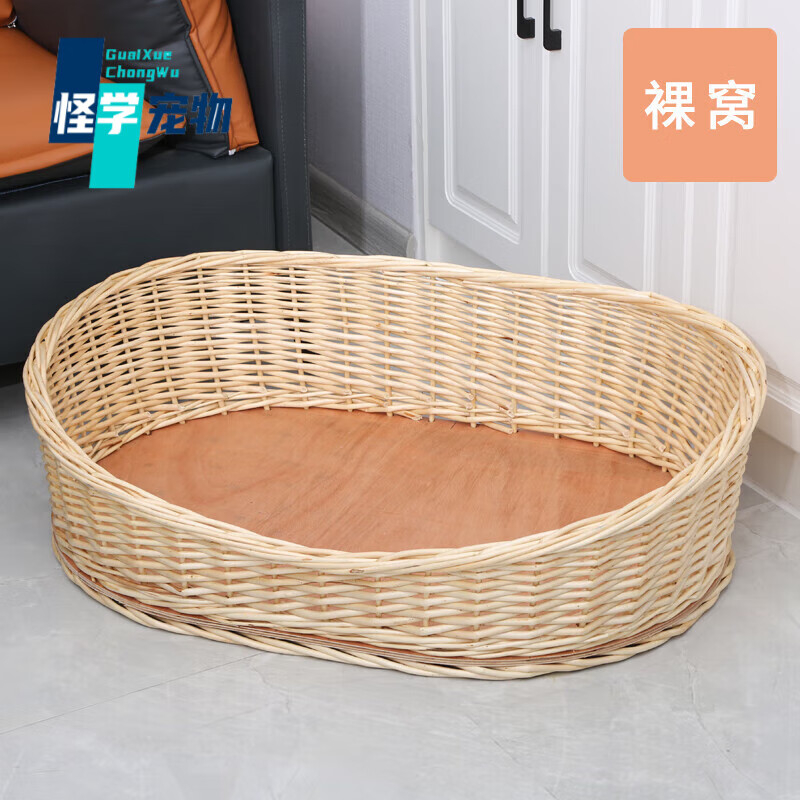 喵仙儿狗窝夏季凉窝柳藤编狗窝四季通用猫窝可拆洗大中小型犬金毛泰迪窝 原色裸窝 五号;50*38【适合6斤内宠物】