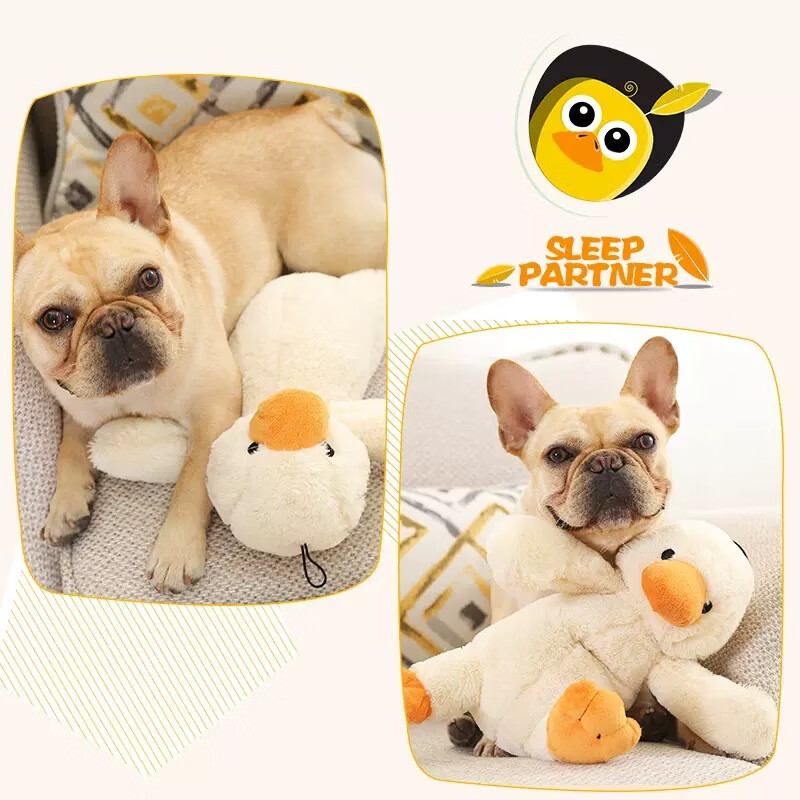 陪睡狗狗泰迪柯基幼犬毛绒鸭子宠物玩具发声耐咬磨牙解闷小狗用品 发声毛绒小鸭小号