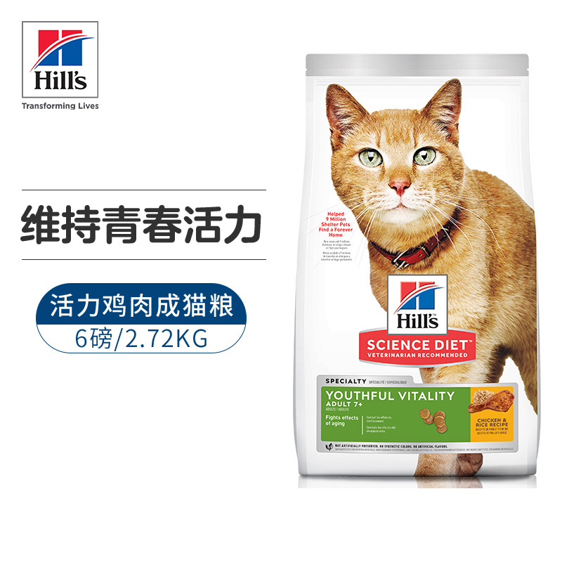 希尔思Hill‘s美国进口高龄猫粮 青春活力型鸡肉味6磅/2.72KG 7岁以上猫咪定制