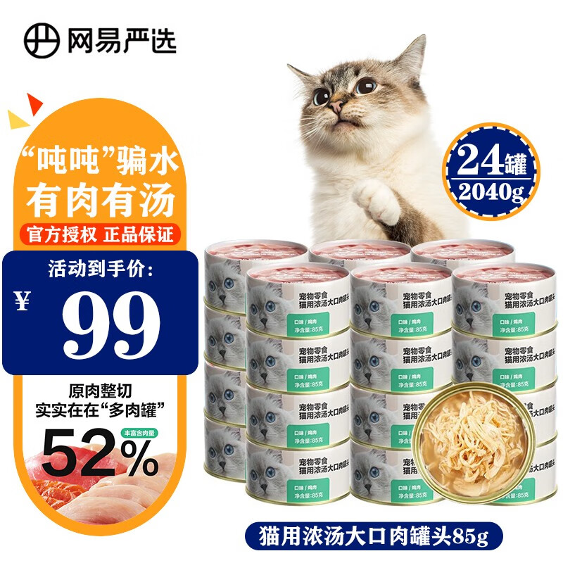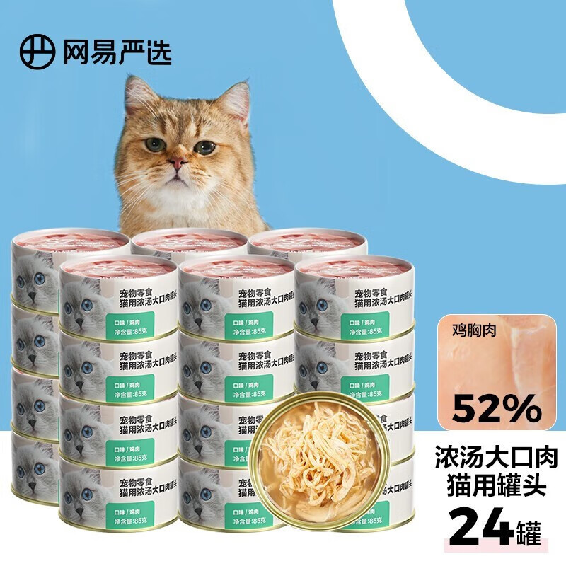 网易严选猫罐头 浓汤大口肉 鸡肉三文鱼补水猫湿粮宠物零食 猫用罐头 鸡肉*24罐