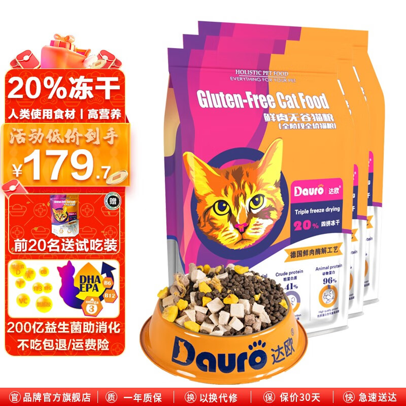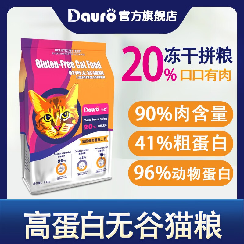 达欧(Dauro)全价无谷冻干猫粮 成猫幼猫高蛋白低敏通用粮 全价猫粮5.4Kg【90%用户选择】