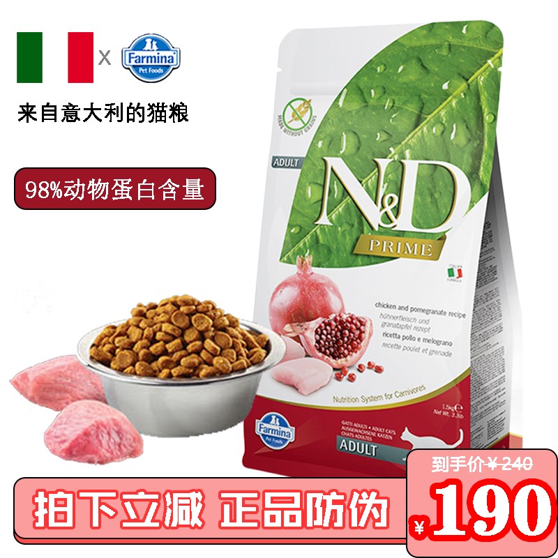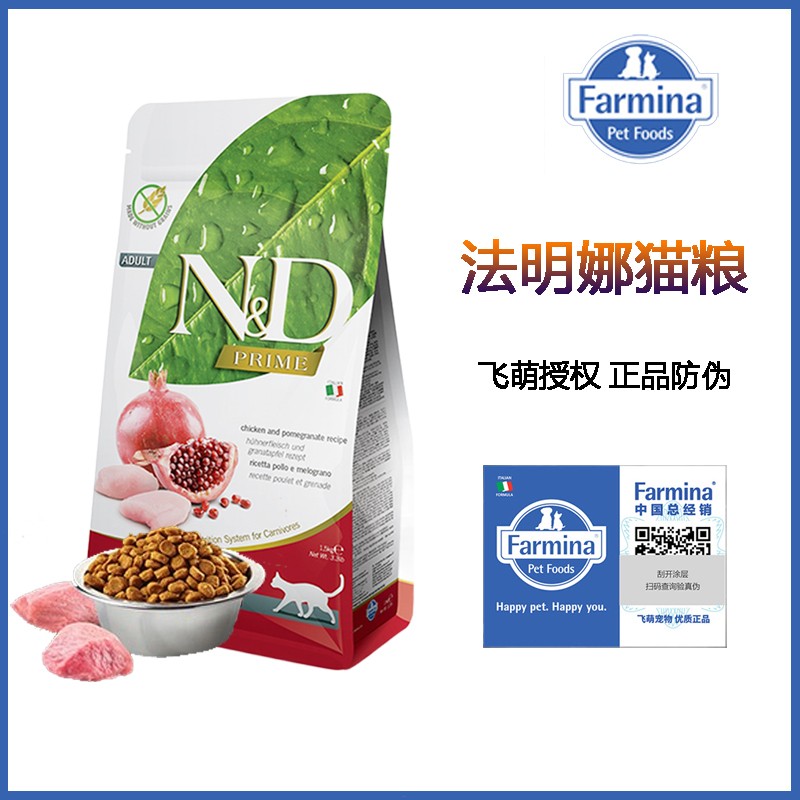 【找客服 券】法米娜猫粮Farmina原装进口法明娜天然无谷98%超高蛋白鸡肉鱼肉幼猫成猫猫粮 成猫鸡肉石榴1.5kg
