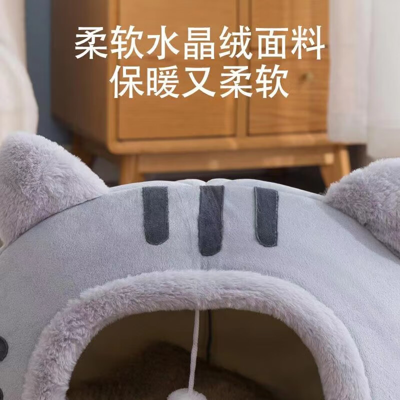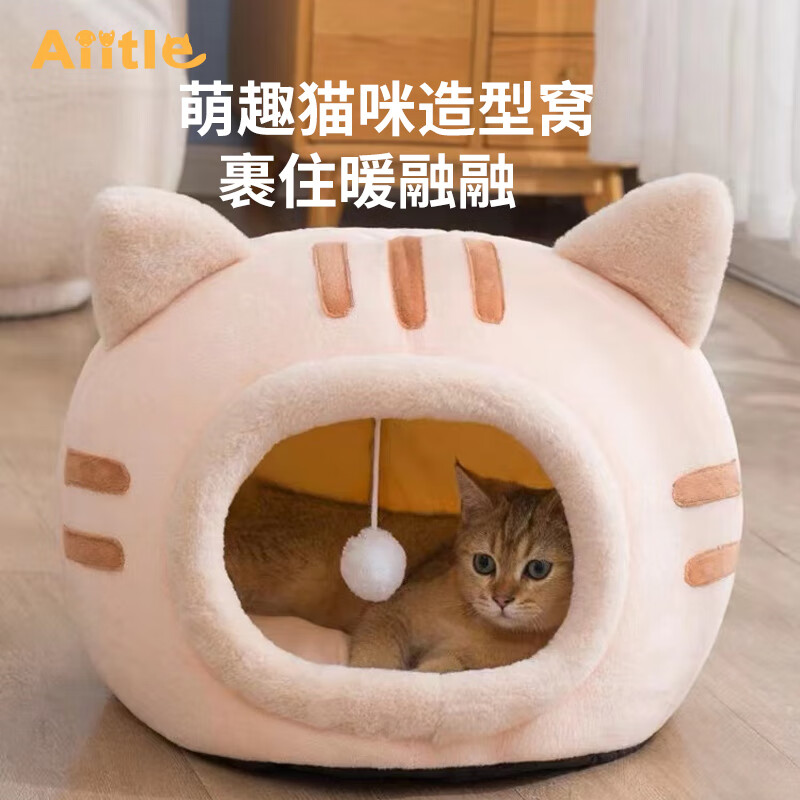 爱它乐全封闭式猫狗窝狗垫冬季保暖猫屋通用加厚猫床猫舍窝 猫头粉色L