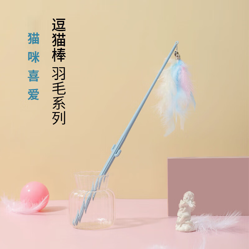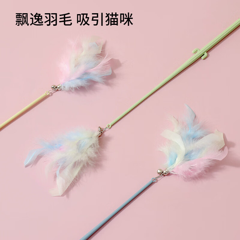 初展 猫玩具逗猫棒耐用长杆逗猫神器羽毛逗猫棒自嗨解闷猫玩具 绿色