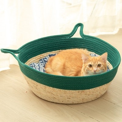 猫窝藤编夏天凉窝四季通用网红猫咪窝房子别墅床猫屋冰窝宠物用品