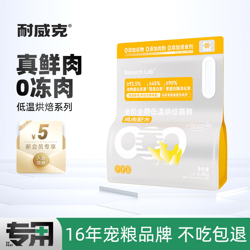 耐威克 全价全期低温烘焙猫粮2kg 高肉含量添加益生菌 鸡肉配方2kg