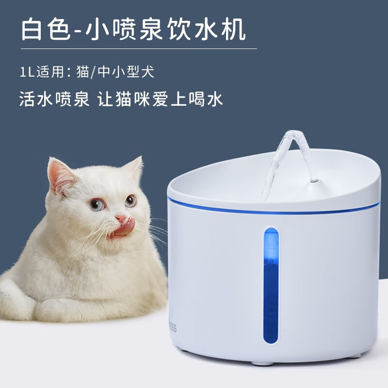 猫咪饮水机智能自动循环活水静音喂水器猫用电动宠物喝水器PETDX 小喷泉饮水机-白色1L