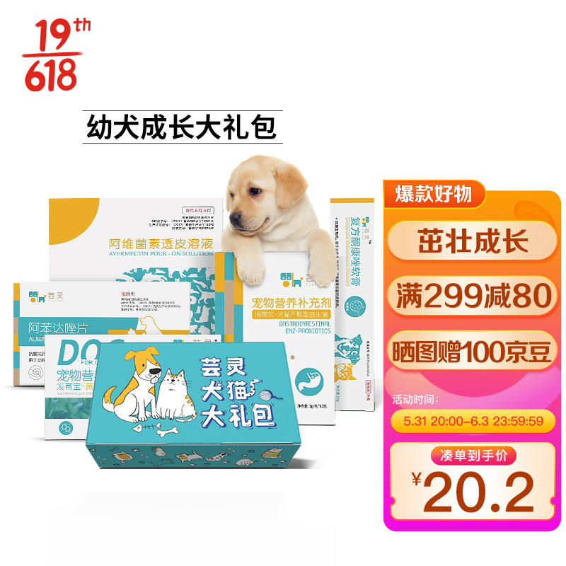 芸灵犬猫成长大礼包幼犬专用礼盒益生菌猫咪狗狗呕吐真菌克星美毛体内外驱虫焕发活力呵护狗狗成长