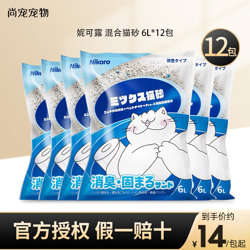 妮可露混合猫砂 5斤 豆腐猫砂除臭抑菌无尘易结团可冲马桶猫沙豆腐砂 【原味】混合猫砂 5斤*12包