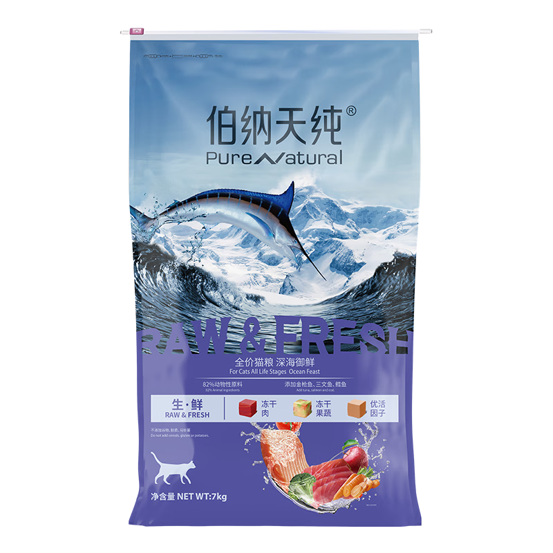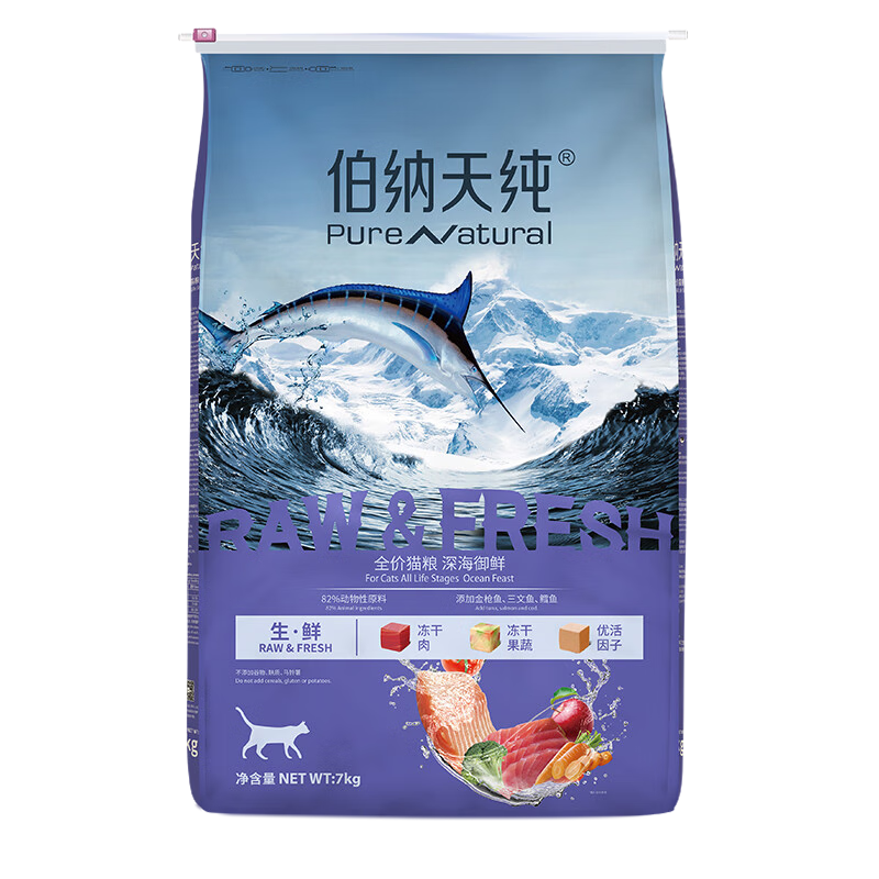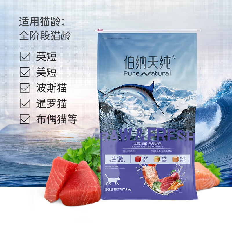 伯纳天纯生·鲜系列深海御鲜全价全期宠物猫粮7kg 猫咪通用主粮冻干系列粮 深海御鲜全价猫粮7kg