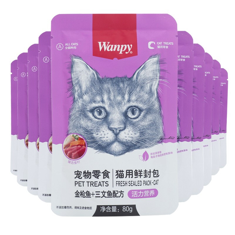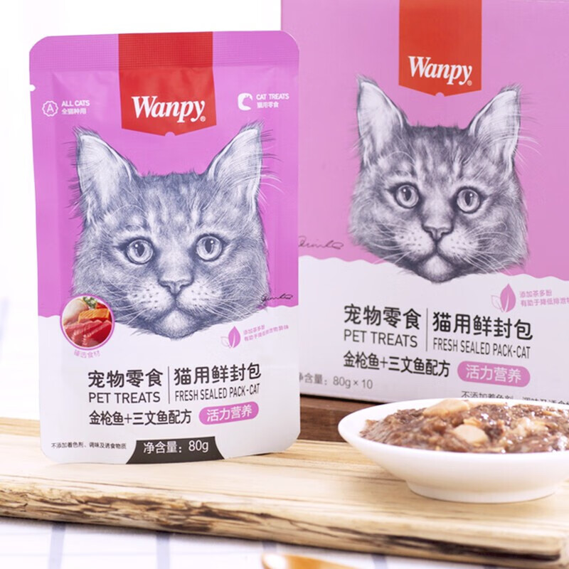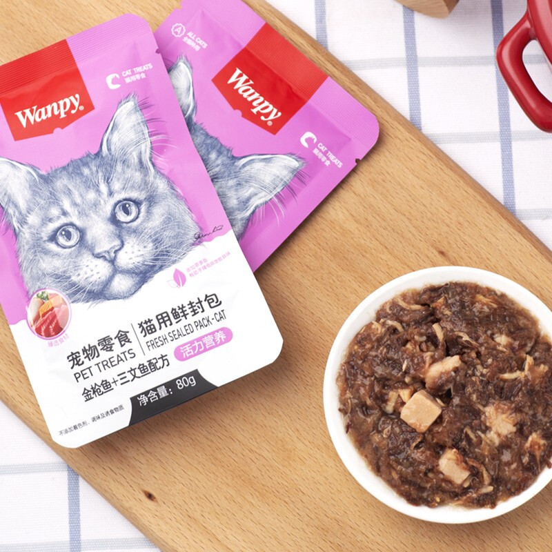 顽皮(wanpy)猫咪鲜封包活力营养宠物猫粮肉粒包猫湿粮猫罐头整盒 金枪鱼 三文鱼80g*10