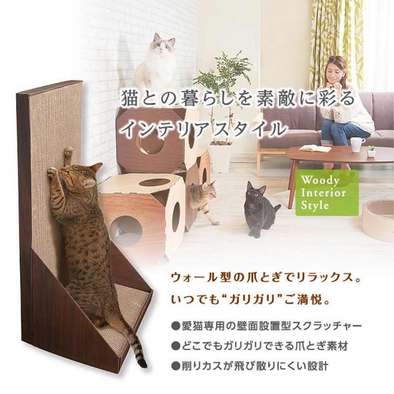 Necosekai猫咪世界GARIGARI立式瓦楞纸猫抓板磨爪器靠墙沙发锻炼可抓可躺70cm高需组装 咖啡木纹